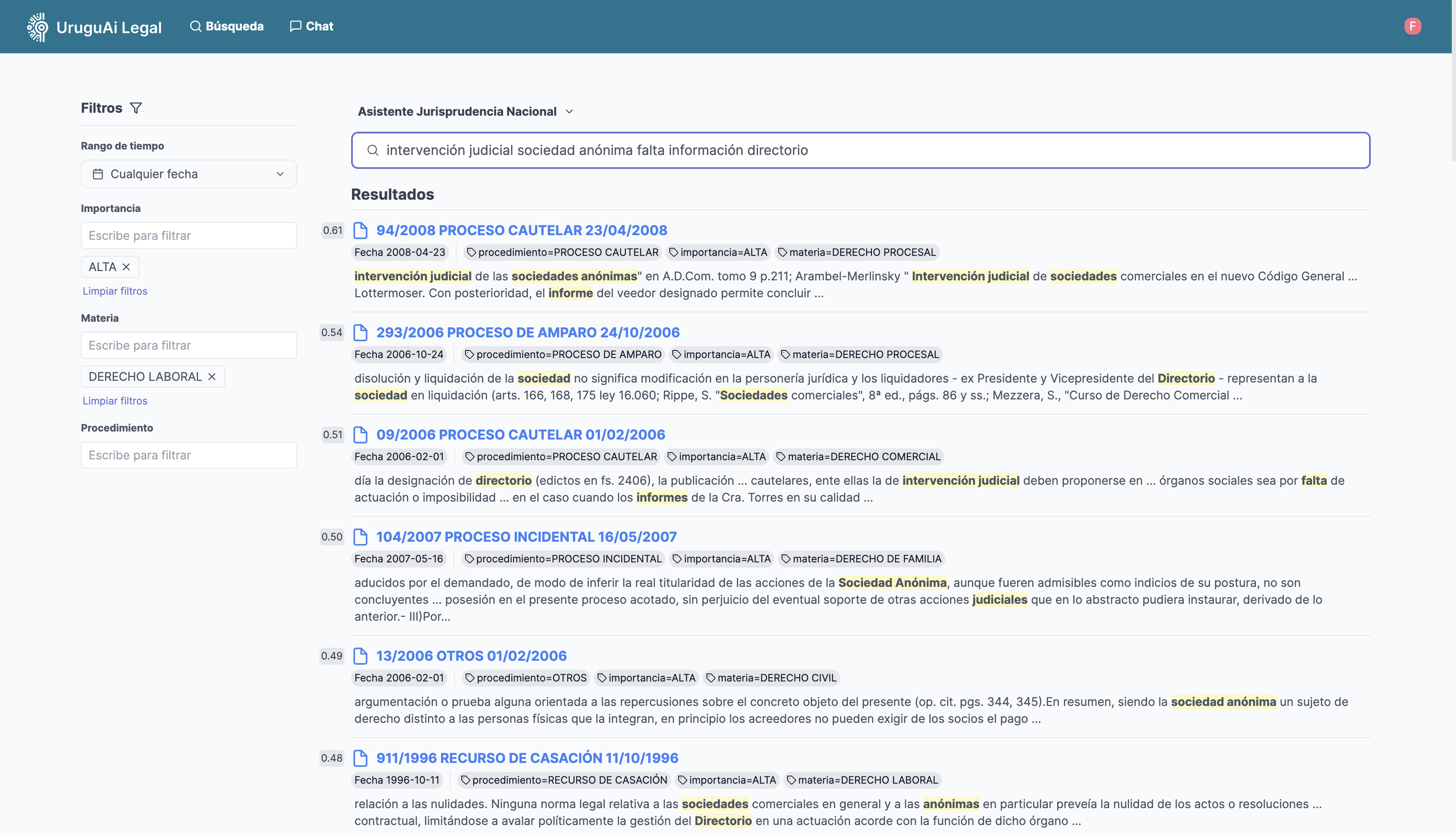 Despídete de las búsquedas de documentos tediosas. Las funciones de búsqueda de UruguAi Legal te permiten: